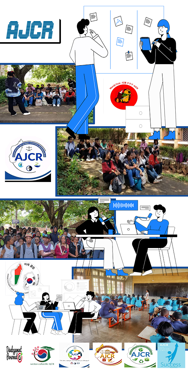 Nous sommes l'AJCR, une association malgache à but non lucratif qui encourage l'engagement citoyen et le bénévolat.